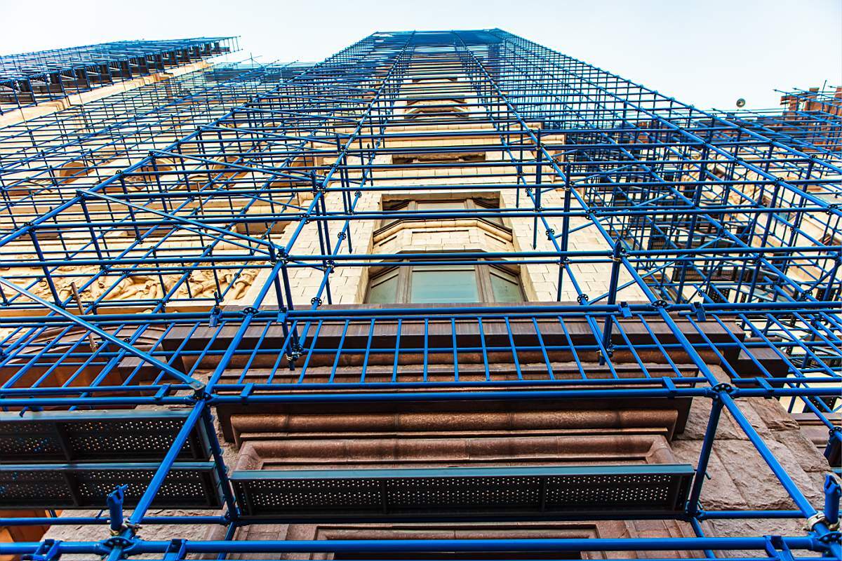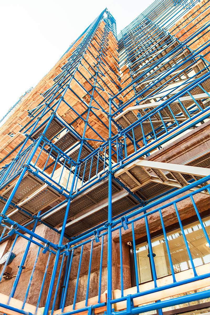 Конфигурация фасада: Леса совместимы с большинством зданий. Для нестандартных форм рекомендуются штыревые конструкции.