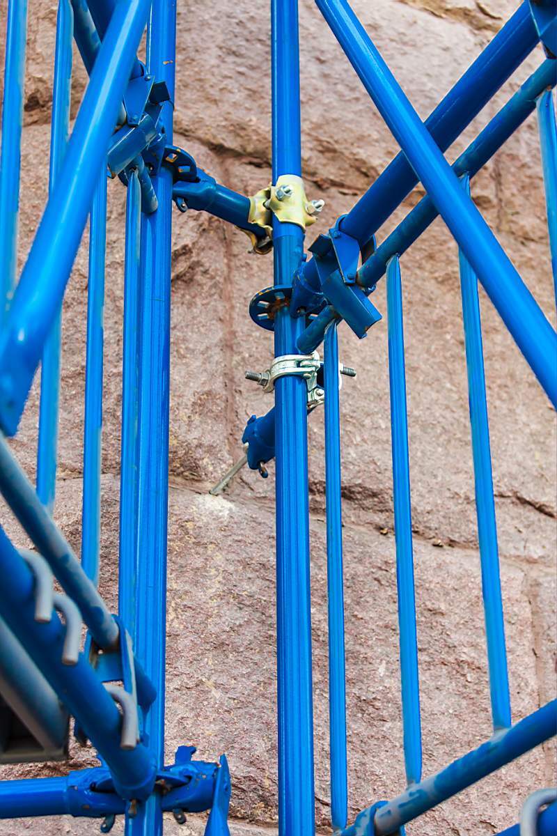 Однако стоит учитывать, что клиновые леса имеют ограничения в многозадачности. В отличие от хомутовых лесов, которые можно адаптировать к различным конфигурациям, клиновые имеют фиксированные параметры: шаг ярусов составляет 0,5, 1 или 2 метра, а угол поворота ограничен количеством отверстий под клинья.